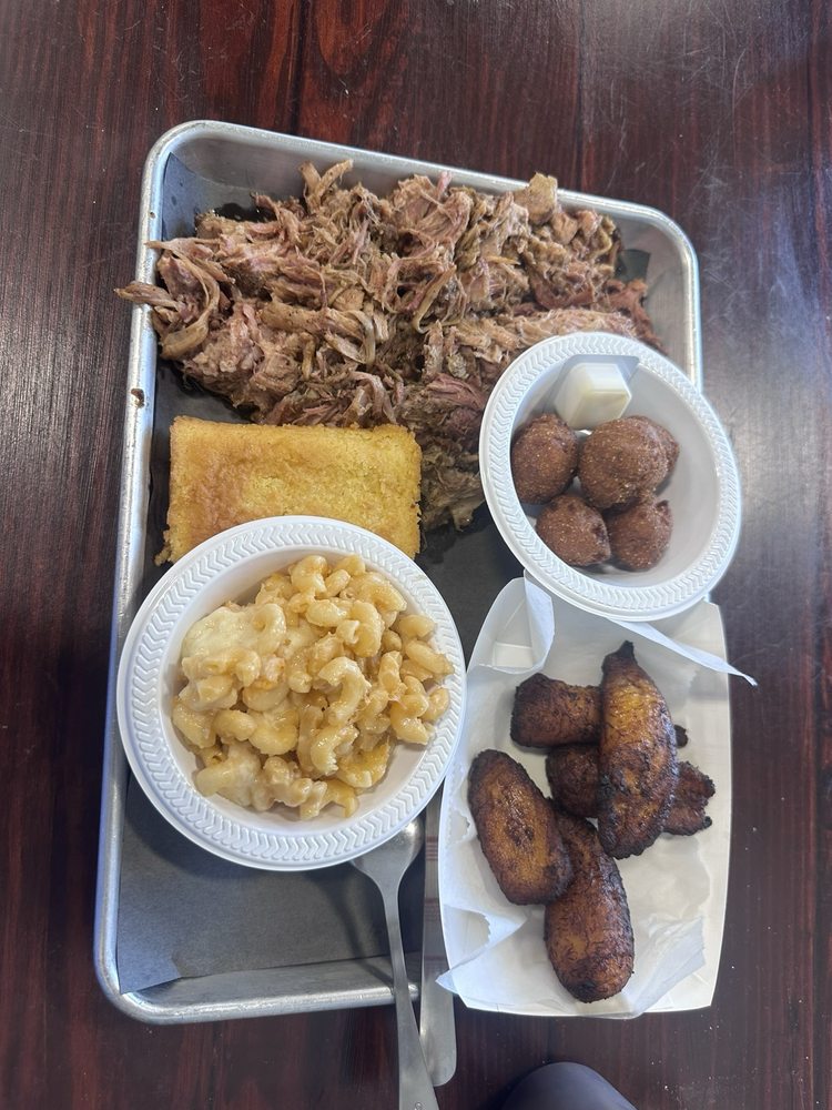 The menu features an assortment of meats, including smoked brisket, tender pulled pork, and juicy ribs, all prepared with attention to flavor. In addition to meats, sides like mac and cheese and fried plantains complement the offerings well. Takeout service is available for customers on the go, making it easy to enjoy their meals anywhere.